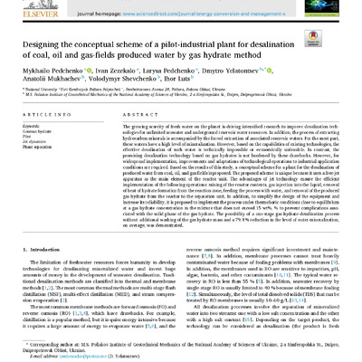 Стаття 2025/12/08Designing the conceptual scheme of a pilot-industrial plant for desalination of coal, oil and gas-fields produced water by gas hydrate method