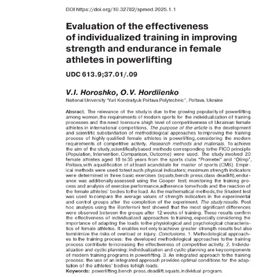 Стаття 2025/06/10Evaluation of the effectiveness of individualized training in improving strength and endurance in female athletes in powerlifting