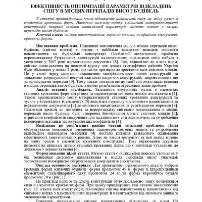 Стаття 2020/07/08Ефективність оптимізації параметрів відкладень снігу в місцях перепадів висот будівель