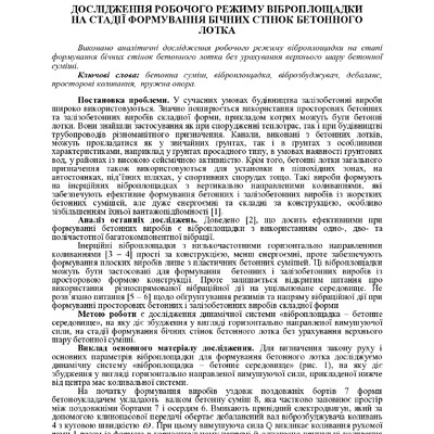 Дослідження робочого режиму віброплощадки на стадії формування бічних стінок бетонного лотка