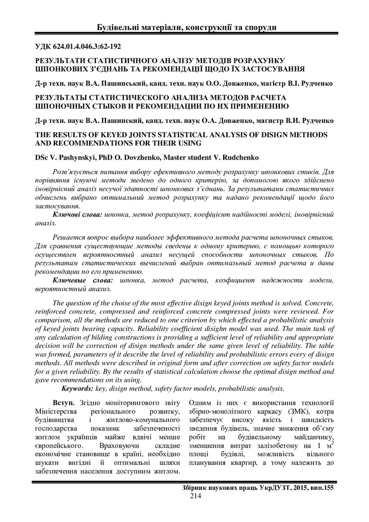 Стаття 2020/07/01Методика розрахунку шпонкових з’єднань залізобетонних елементів