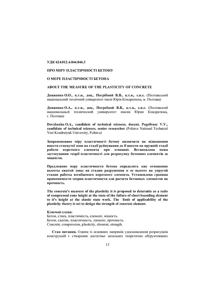 Запропоновано міру пластичності бетону визначати як відношення висоти стиснутої зони на стадії ру...