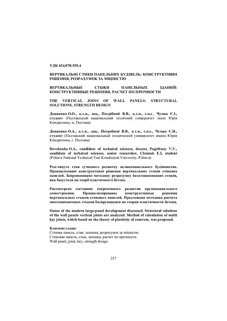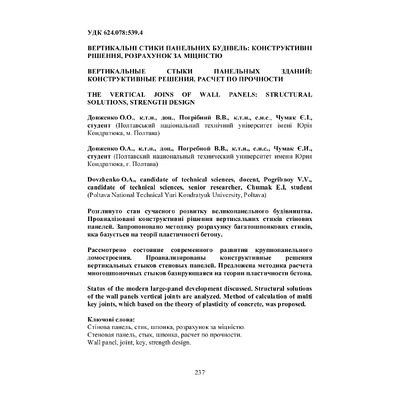 Стаття 2020/07/02Вертикальні стики панельних будівель: конструктивні рішення, розрахунок за міцністю