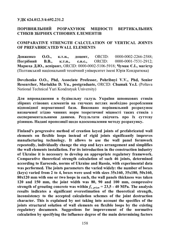Стаття 2020/07/03Порівняльний розрахунок міцності вертикальних стиків збірних стінових елементів