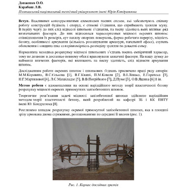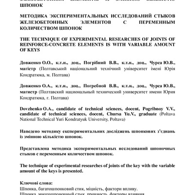 Стаття 2020/07/01Методика експериментальних досліджень стиків залізобетонних елементів із змінною кількістю шпонок