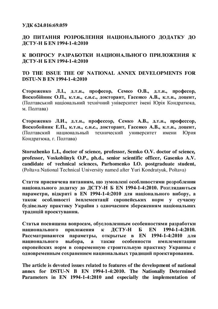 Стаття присвячена питанням, що зумовлені особливостями розроблення національного додатку до ДСТУ-...