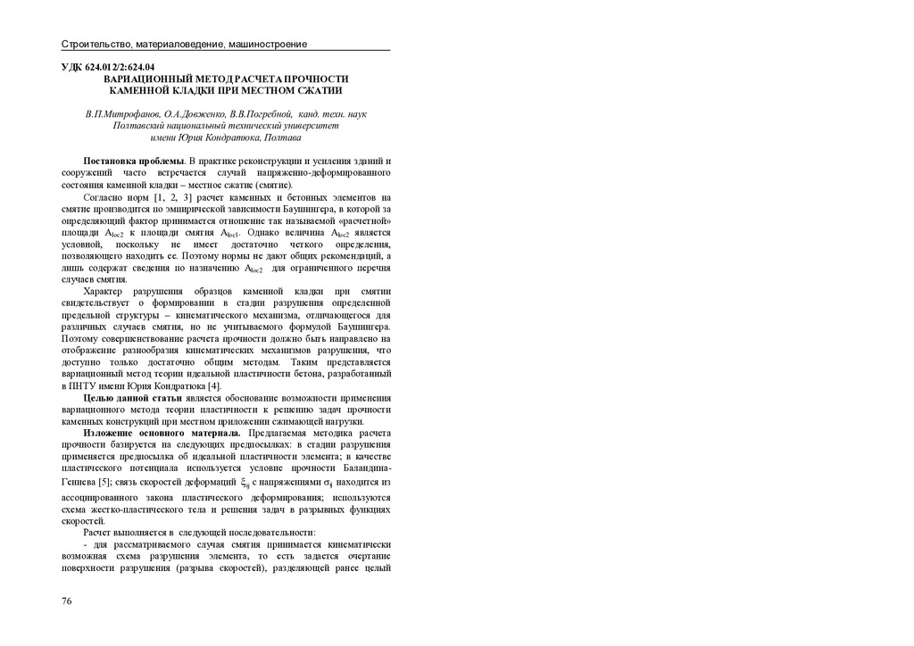 Вариационный метод расчета прочности каменной кладки при местном сжатии