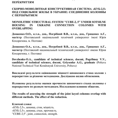 Стаття 2020/07/01Збірно-монолітна конструктивна система "КУБ-2,5" під соціальне житло в Україні: зʼєднання колони з перекриттям
