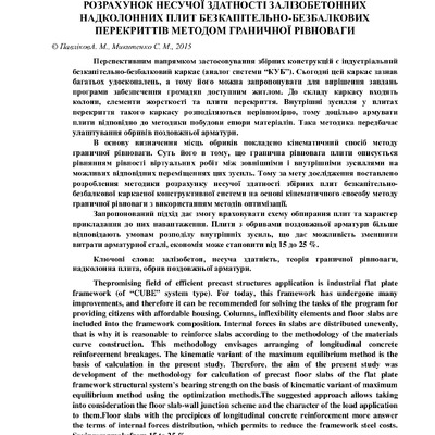 Розроблено методику розрахунку несучої здатності міжколонної плити перекриття безконсольно-безкап...