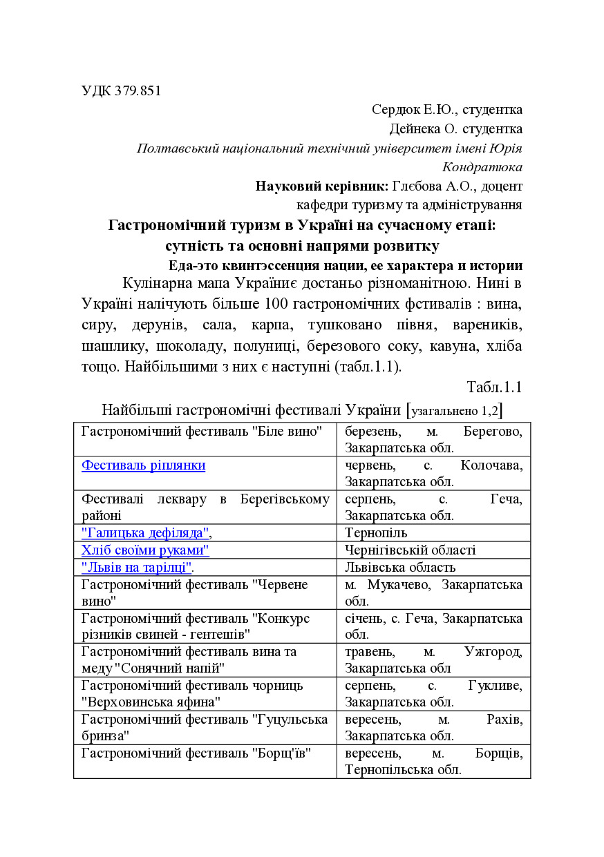 Гастрономічний туризм в Україні на сучасному етапі : сутність та основні напрями розвитку
