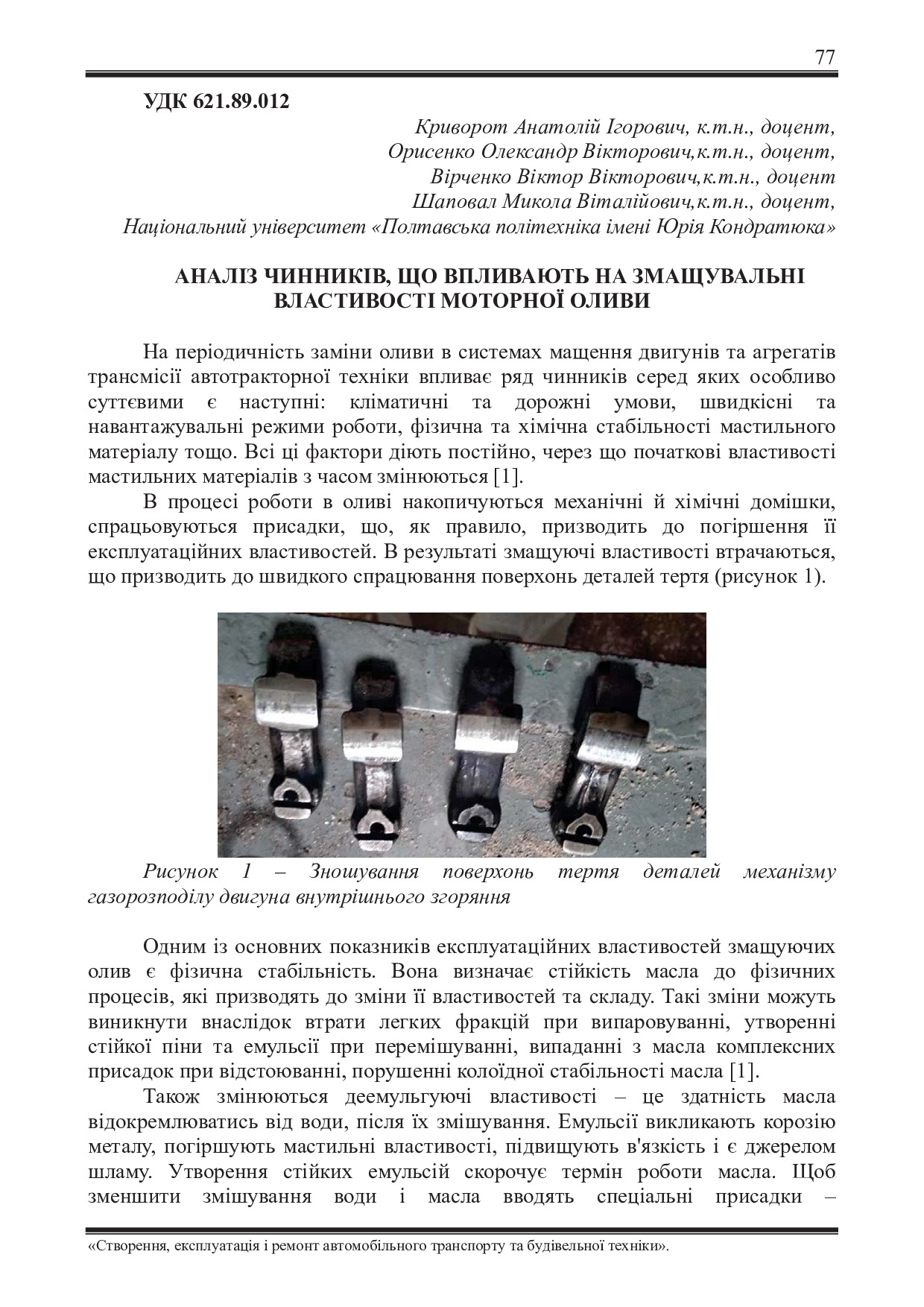 Аналіз чинників, що впливають на змащувальні властивості моторної оливи