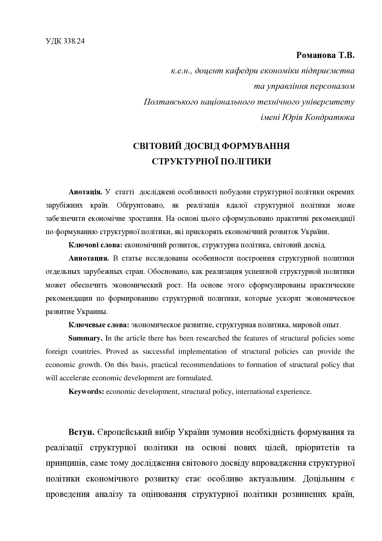 Світовий досвід формування структурної політики