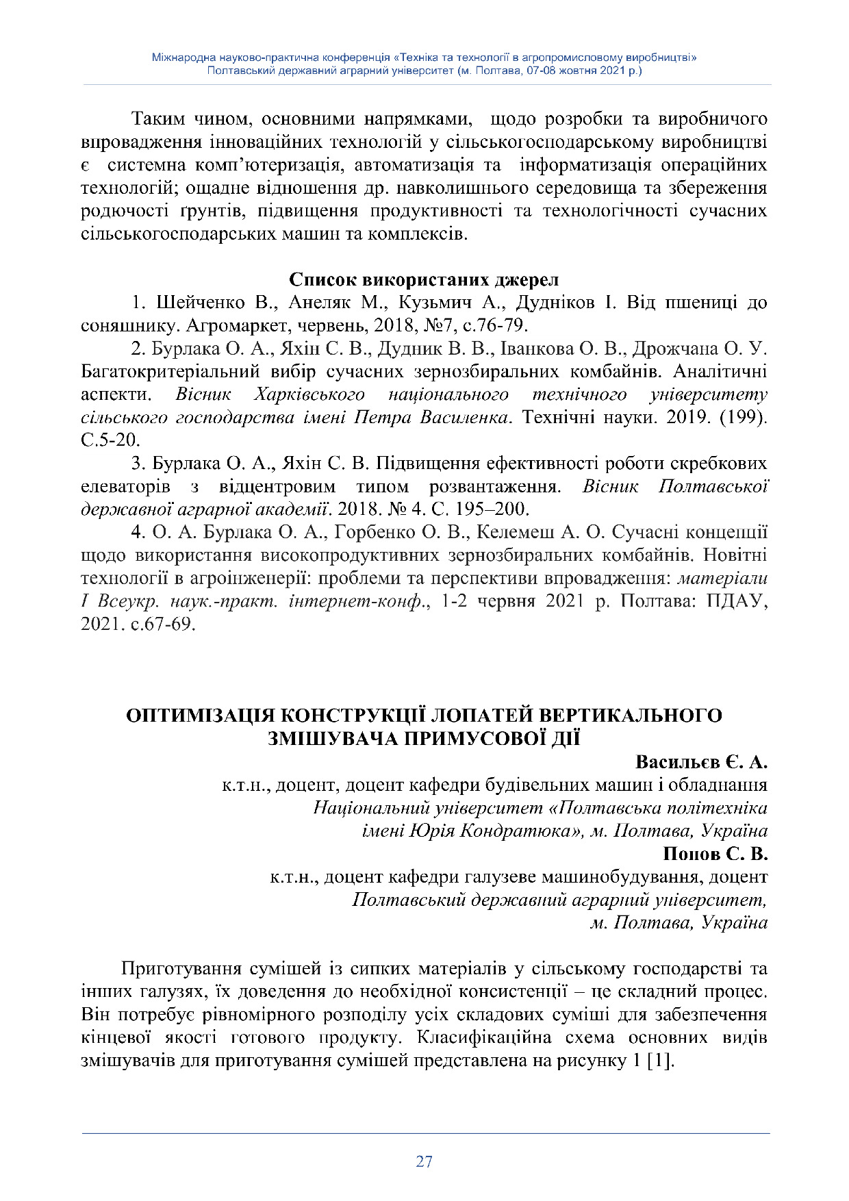 Оптимізація конструкції лопатей вертикального змішувача примусової дії.