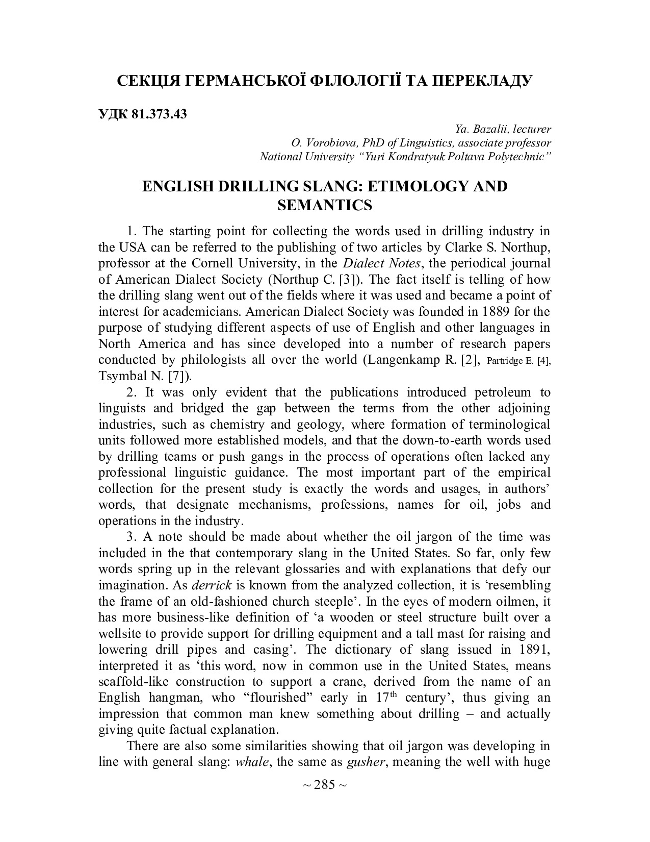 English drilling slang: etimology and semantics