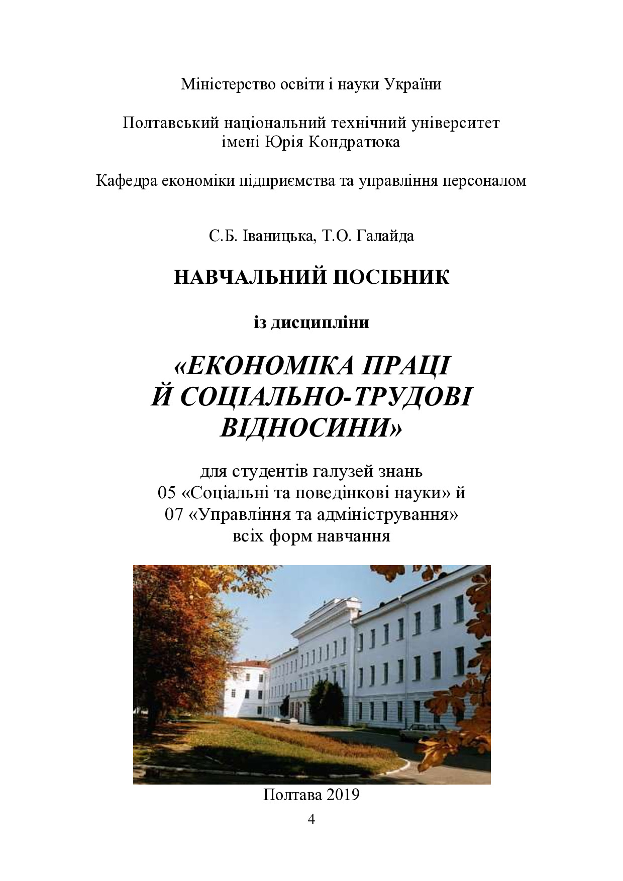 Навчальний посібник із дисципліни «Економіка праці й соціально-трудові відносини» для студентів галузей знань 05 «Соціальні та поведінкові науки» й 07 «Управління та адміністрування» усіх форм навчання