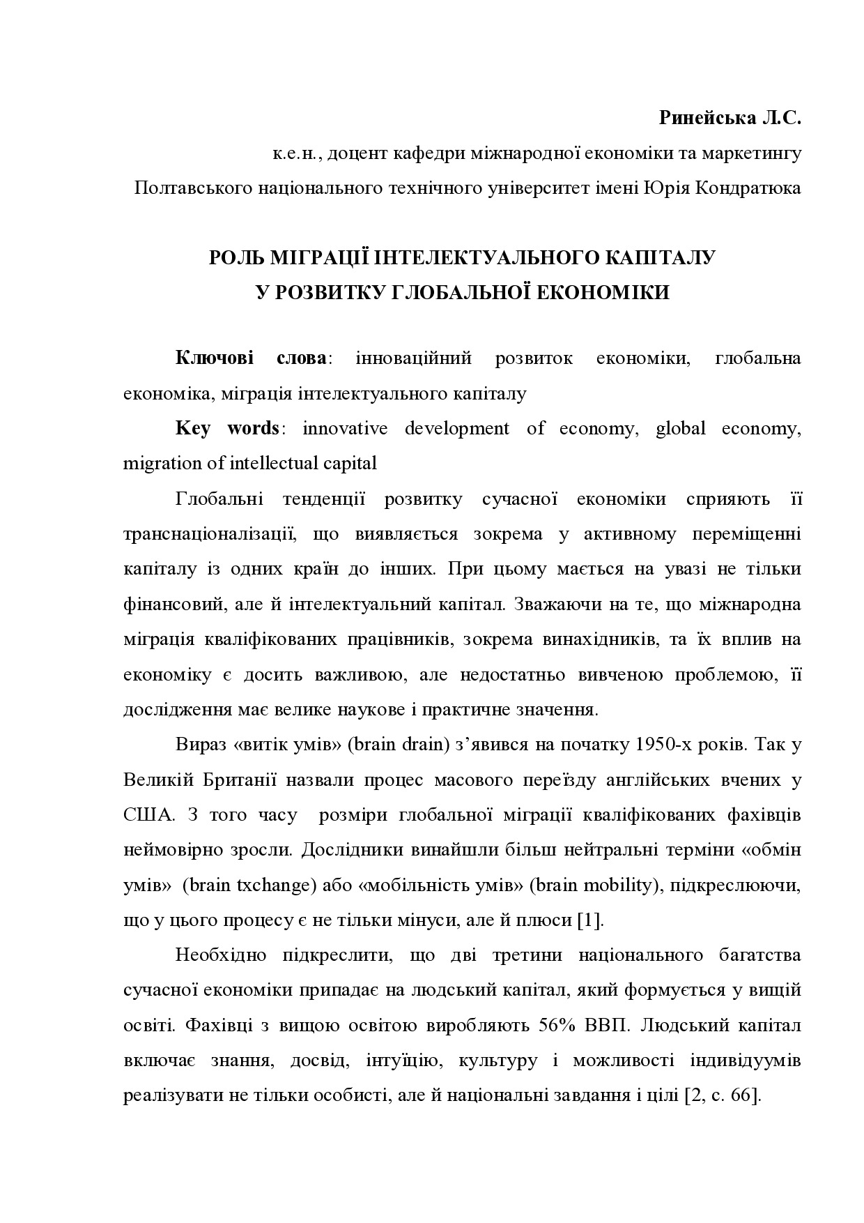 Роль міграції інтелектуального капіталу у розвитку глобальної економіки