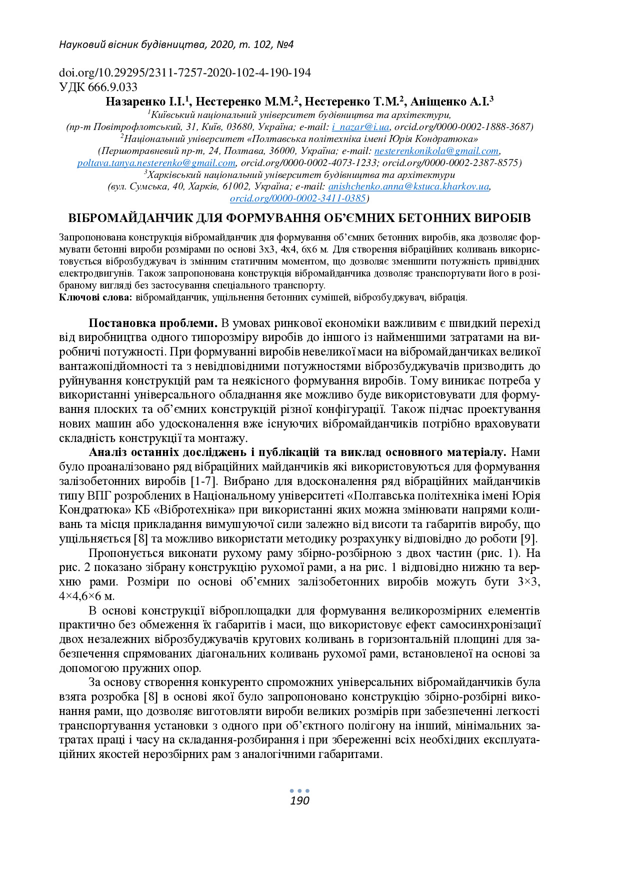 Вібромайданчик для формування об’ємних бетонних виробів