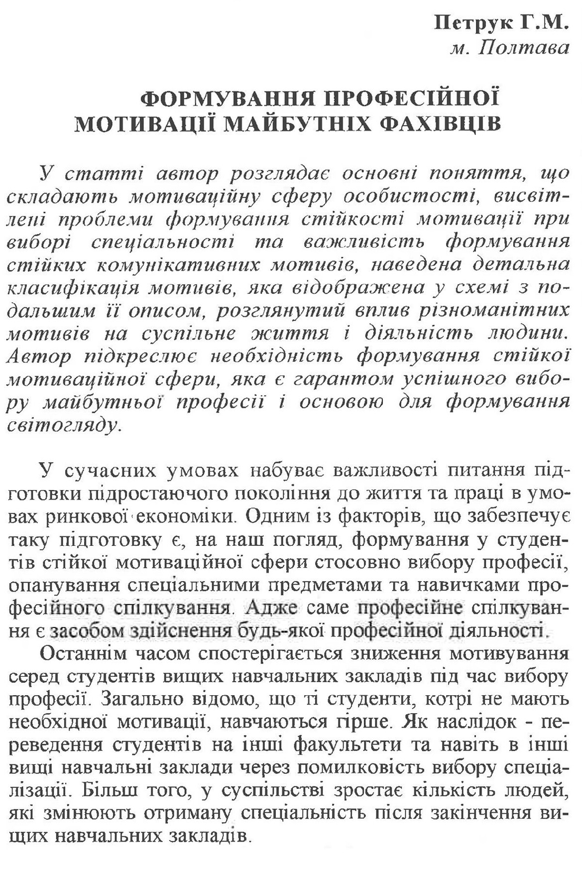 Формування професійної мотивації майбутніх фахівців
