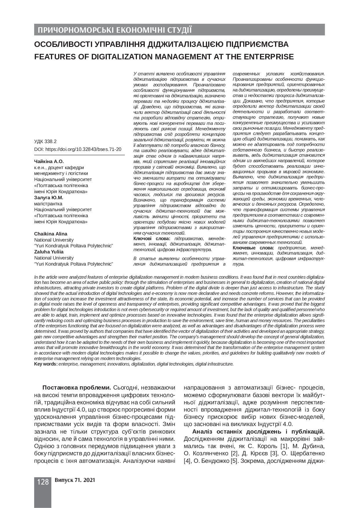 Особливості управління діджиталізацією підприємства