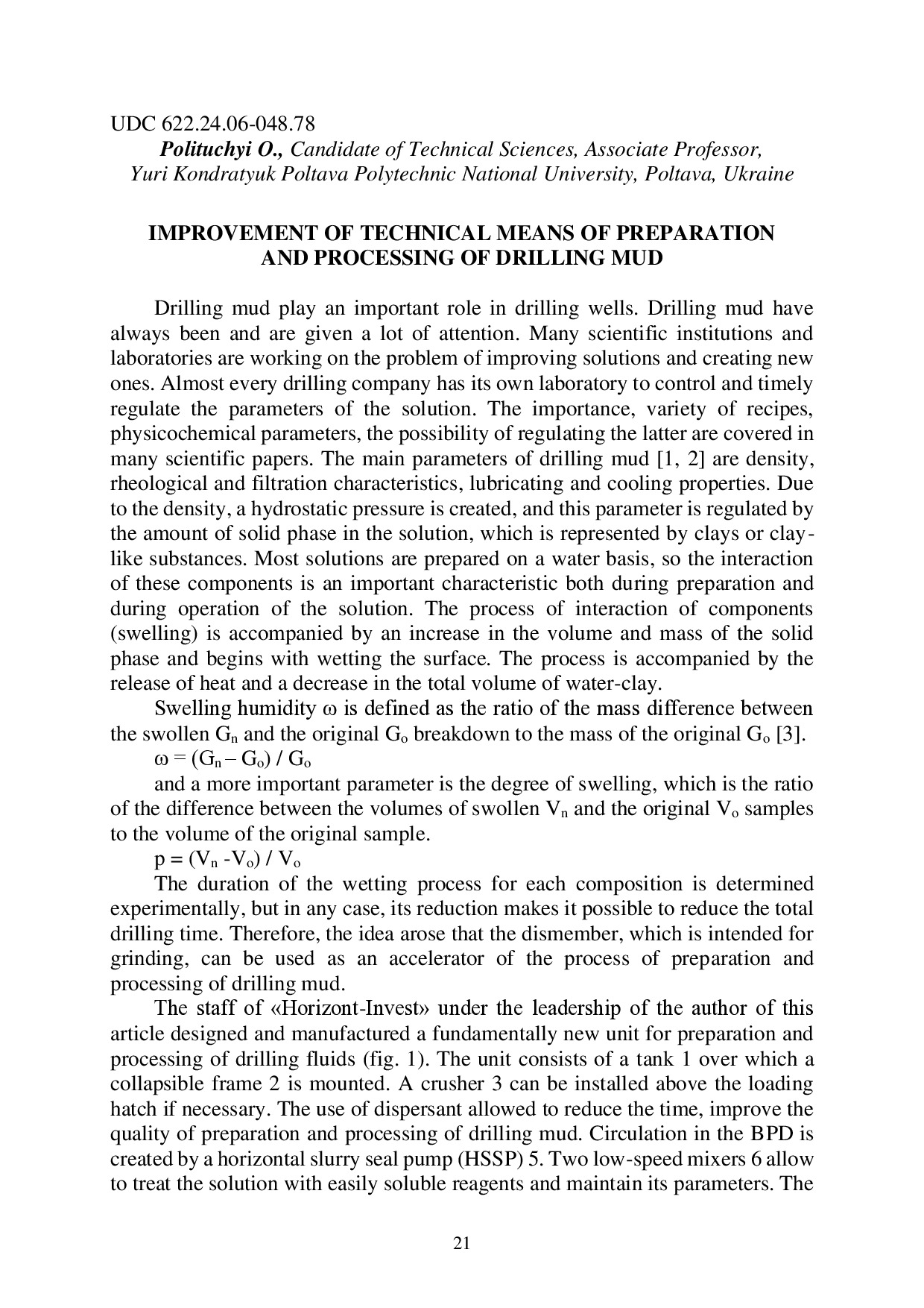 Improvement of technical means of preparation and processing of drilling mud