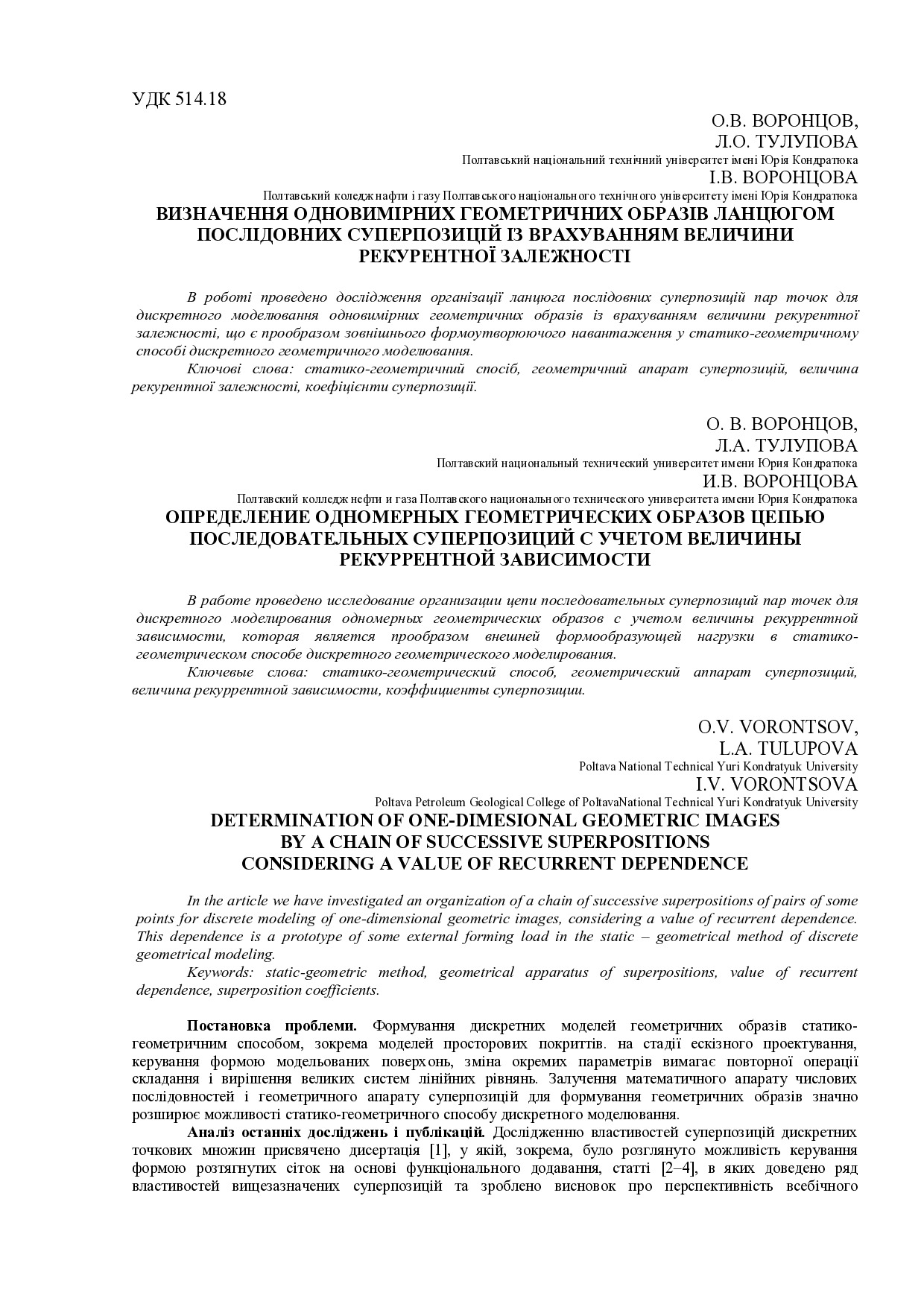 Визначення одновимірних геометричних образів ланцюгом послідовних суперпозицій із врахуванням величини рекурентної залежності