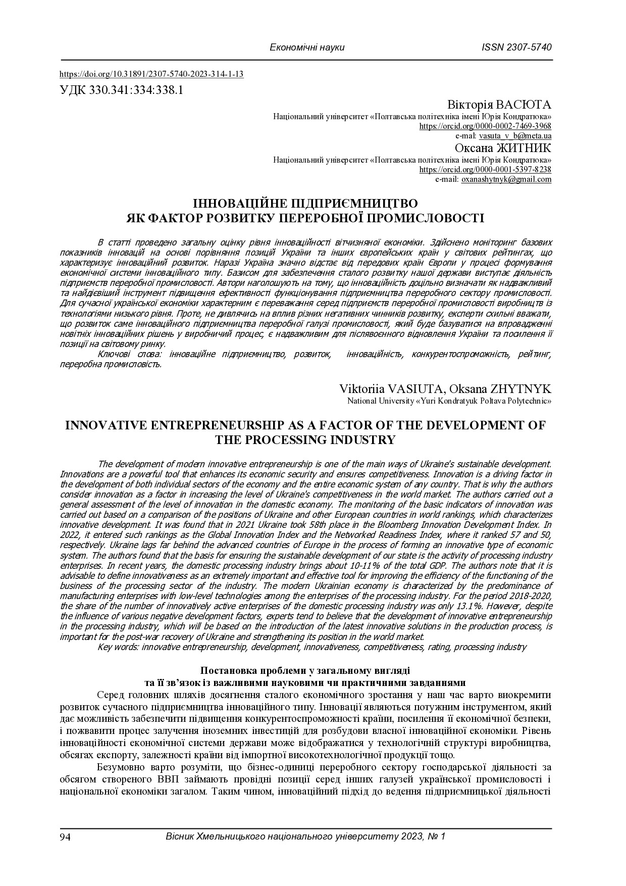 Інноваційне підприємництво як фактор розвитку переробної промисловості