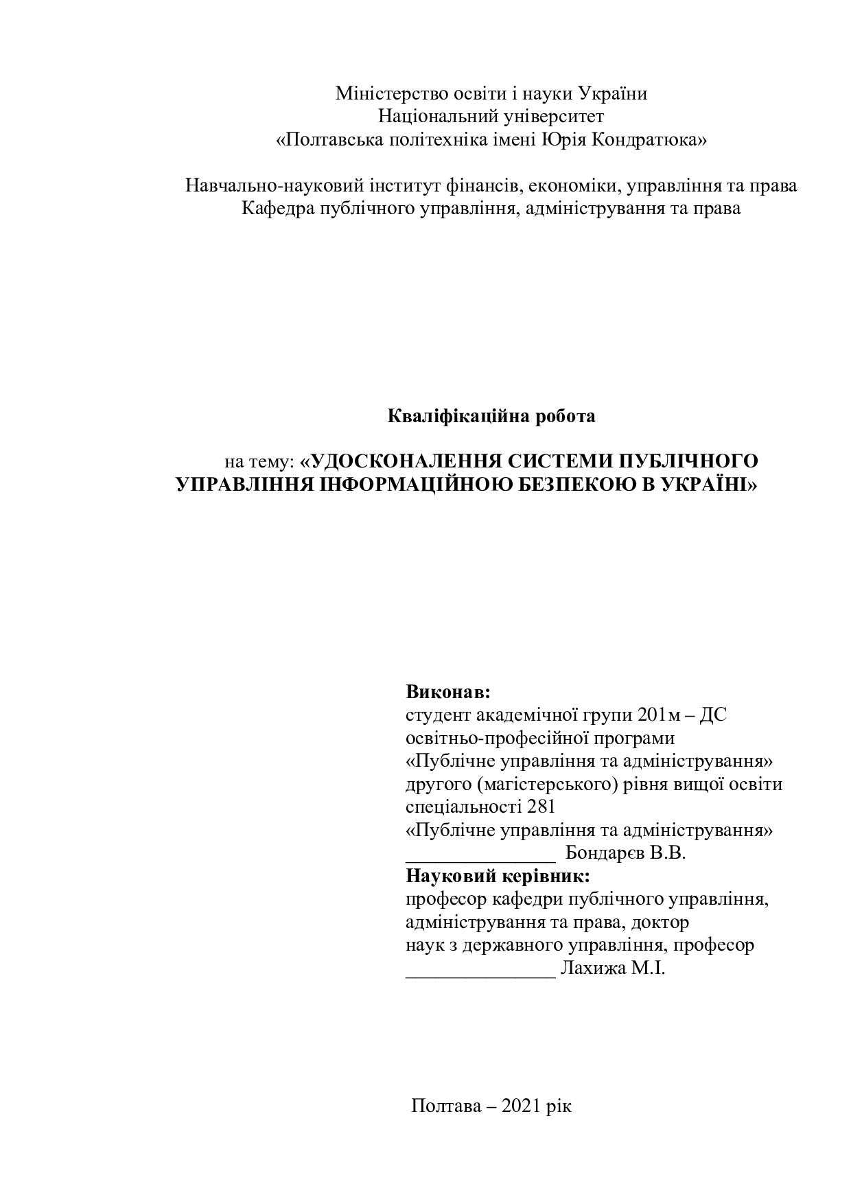 Удосконалення системи публічного управління інформаційною безпекою в Україні