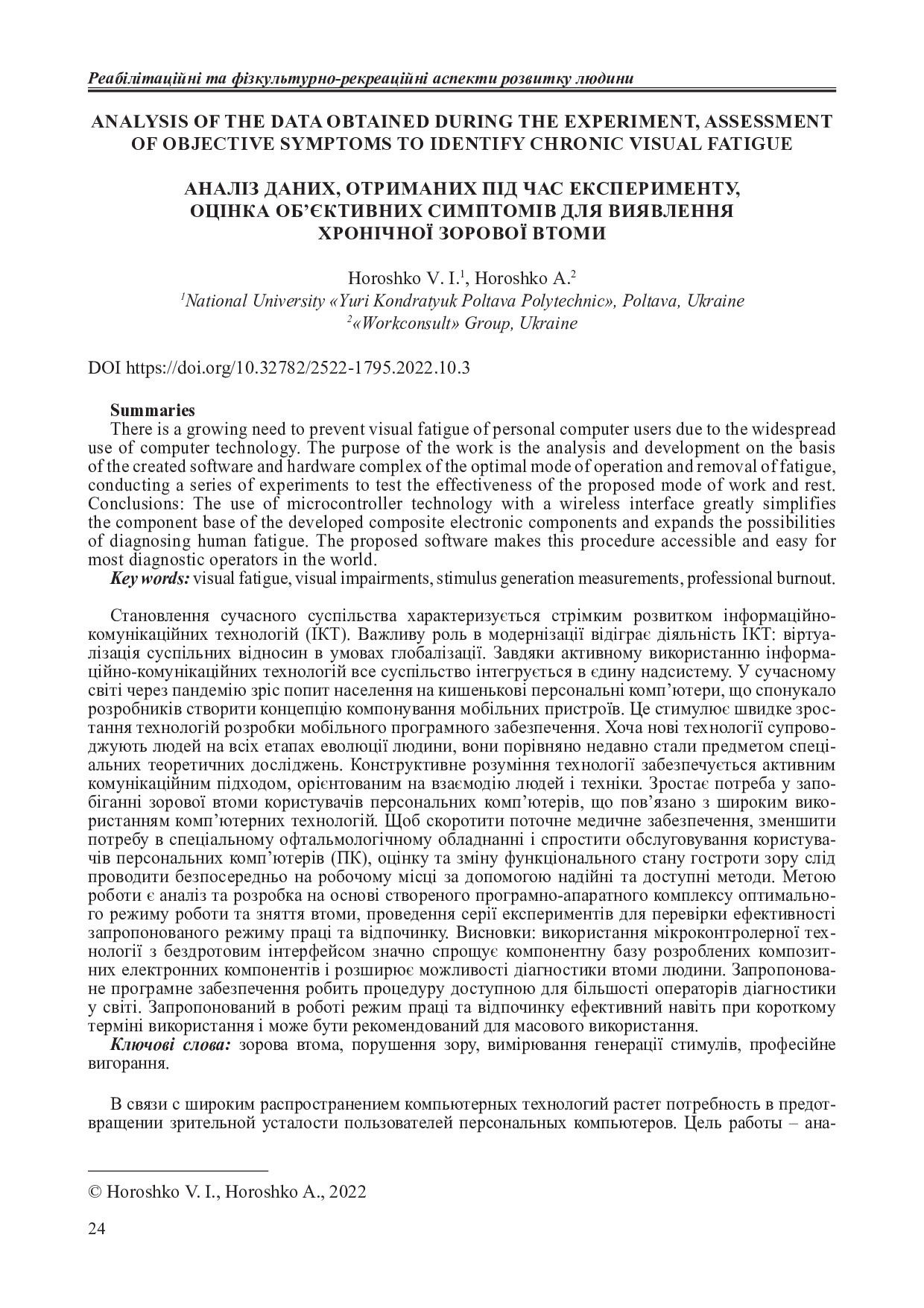 Analysis of the data obtained during the experiment, assessment of objective symptoms to identify chronic visual fatigue