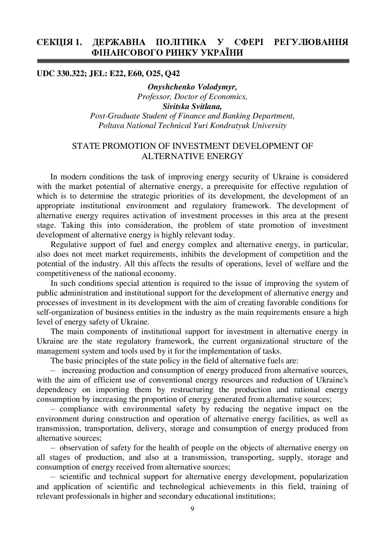 State promotion of investment development of alternative energy