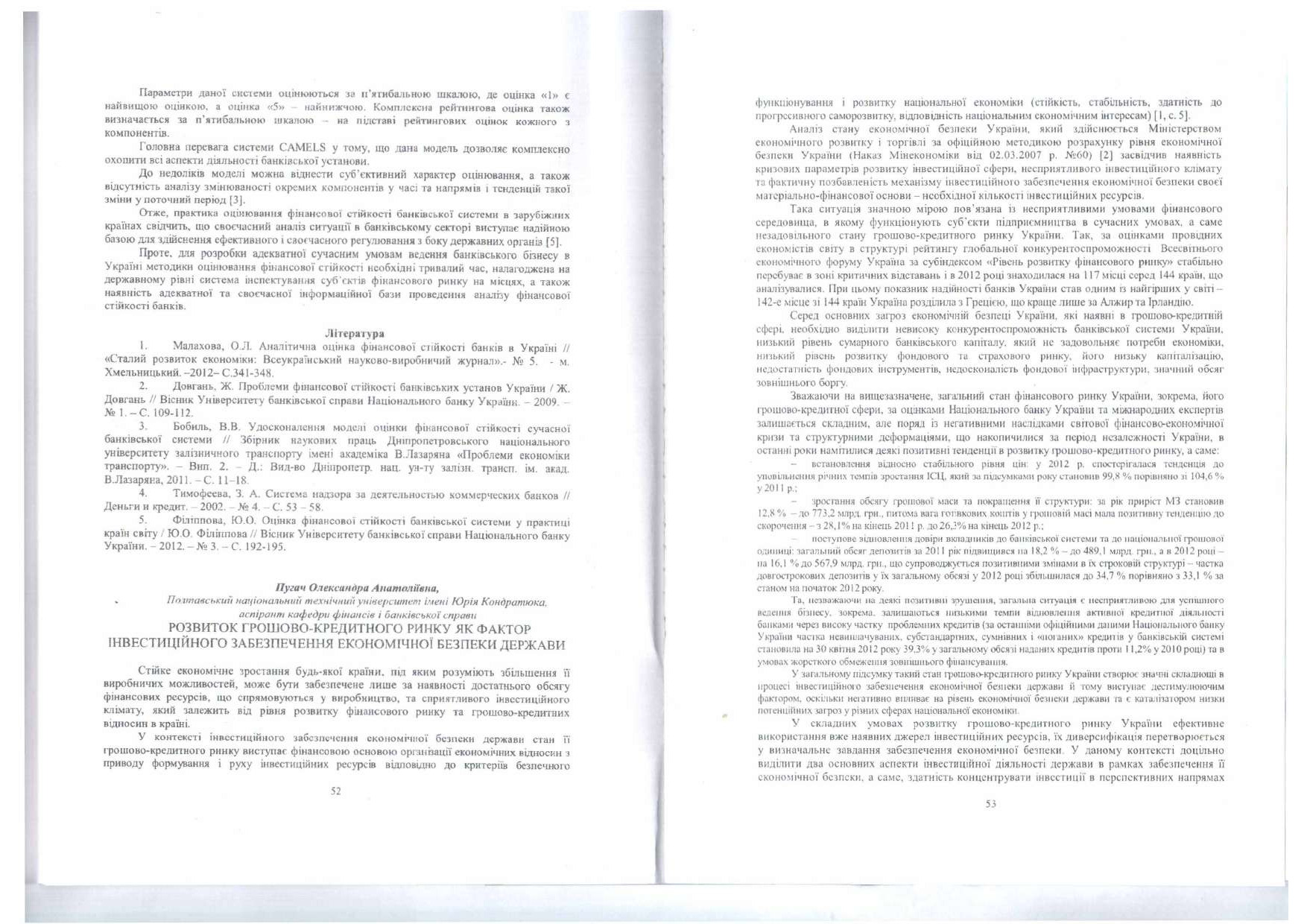 Розвиток грошово-кредитного ринку як фактор інвестиційного забезпечення економічної безпеки держави