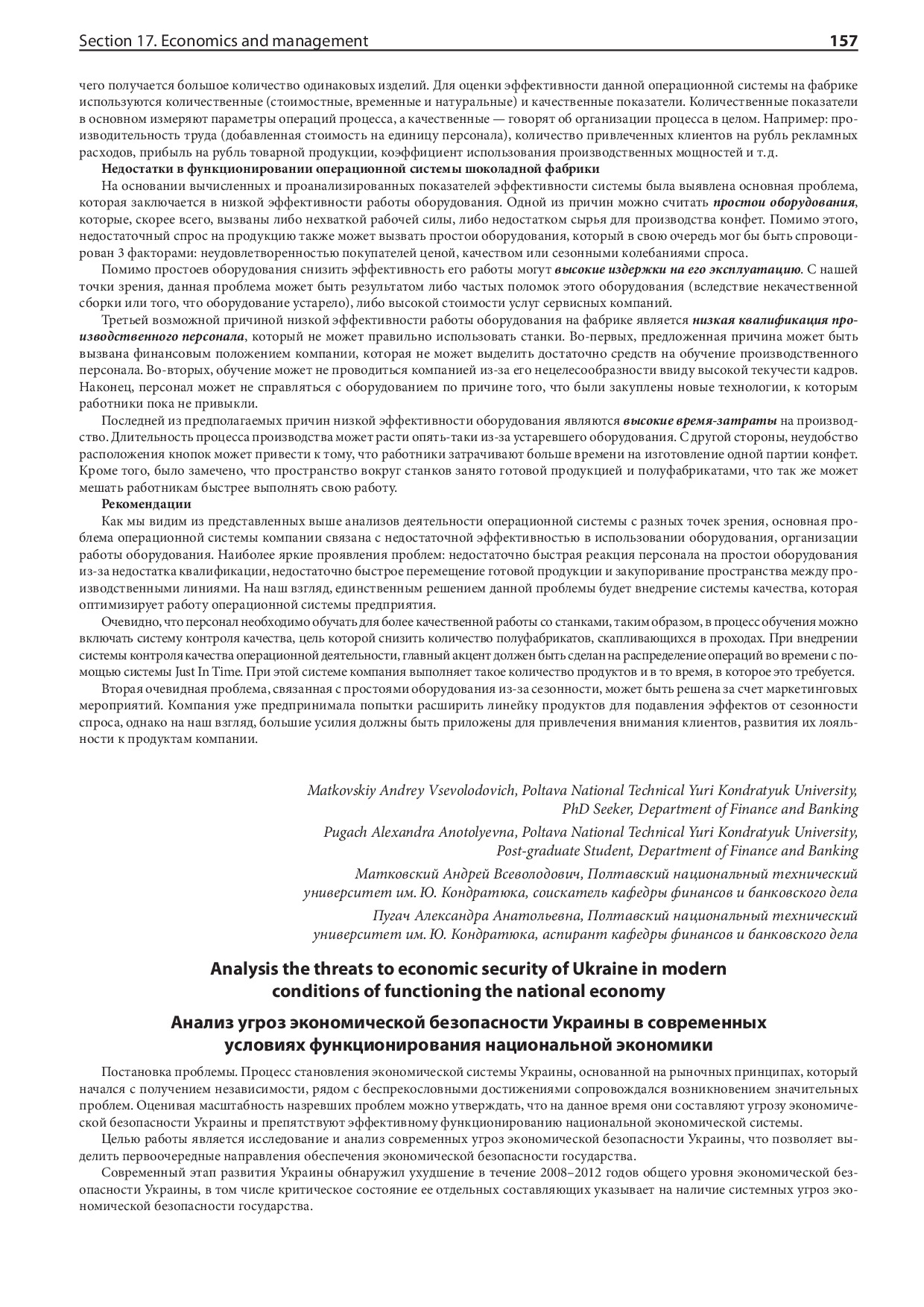 Analysis the Threats to Economic Security of Ukraine in Modern Conditions of Functioning the National Economy