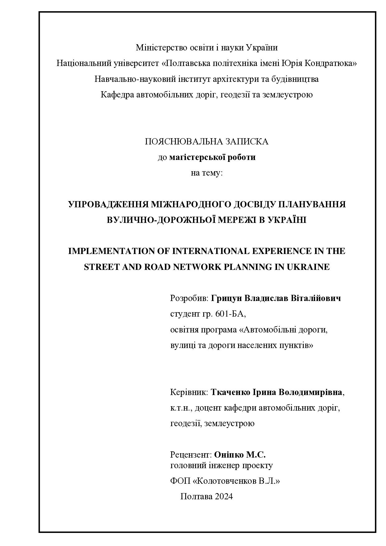 Упровадження міжнародного досвіду планування вулично-дорожньої мережі в Україні