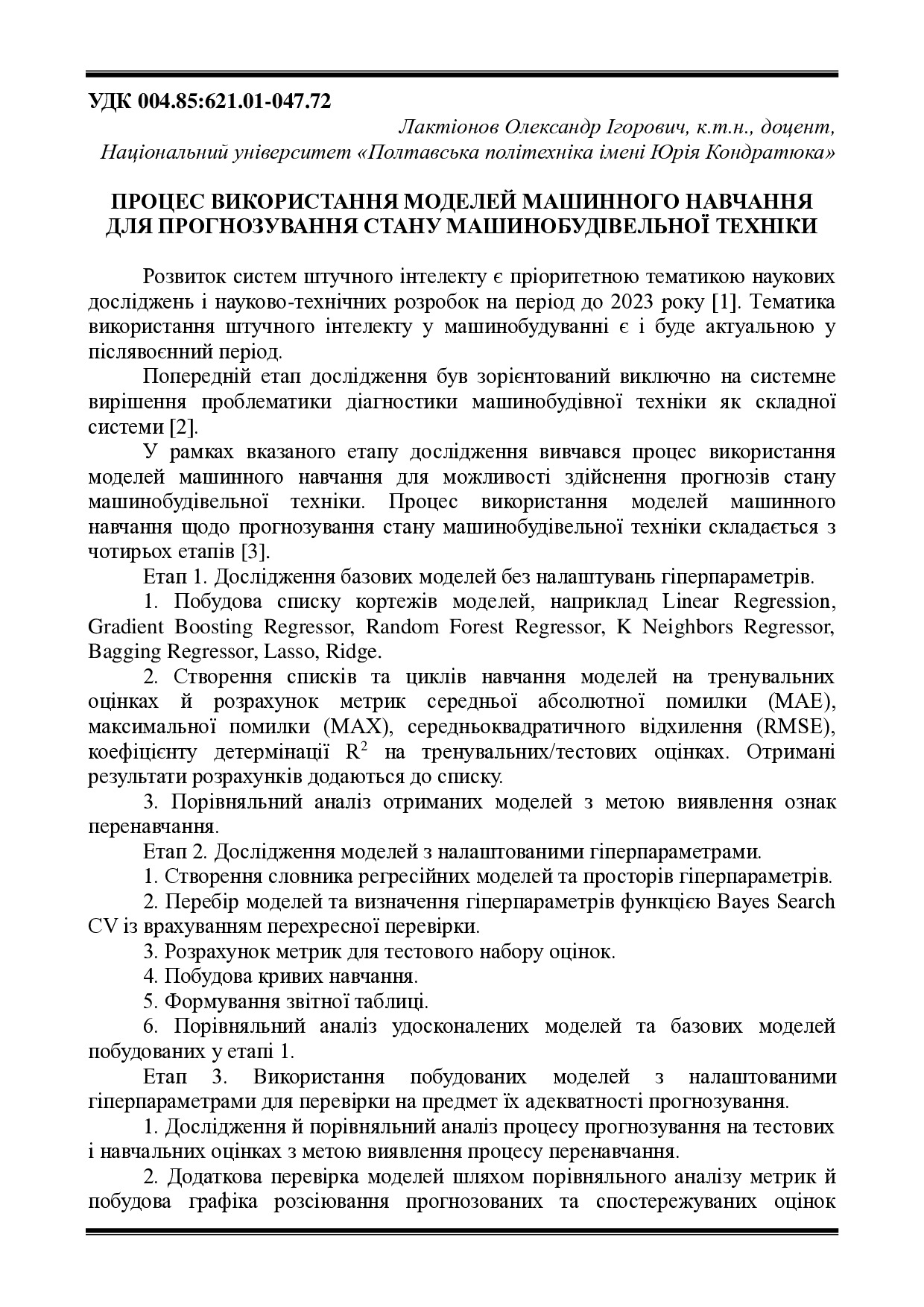 Процес використання моделей машинного навчання для прогнозування стану машинобудівельної техніки