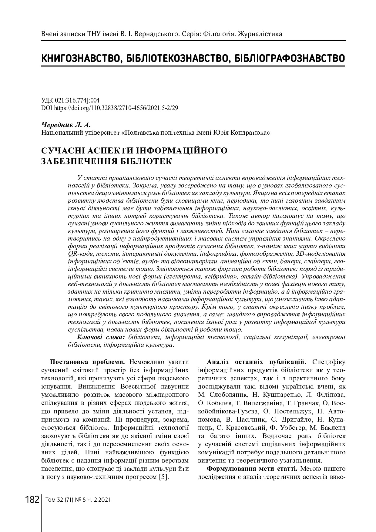 Сучасні аспекти інформаційного забезпечення бібліотек
