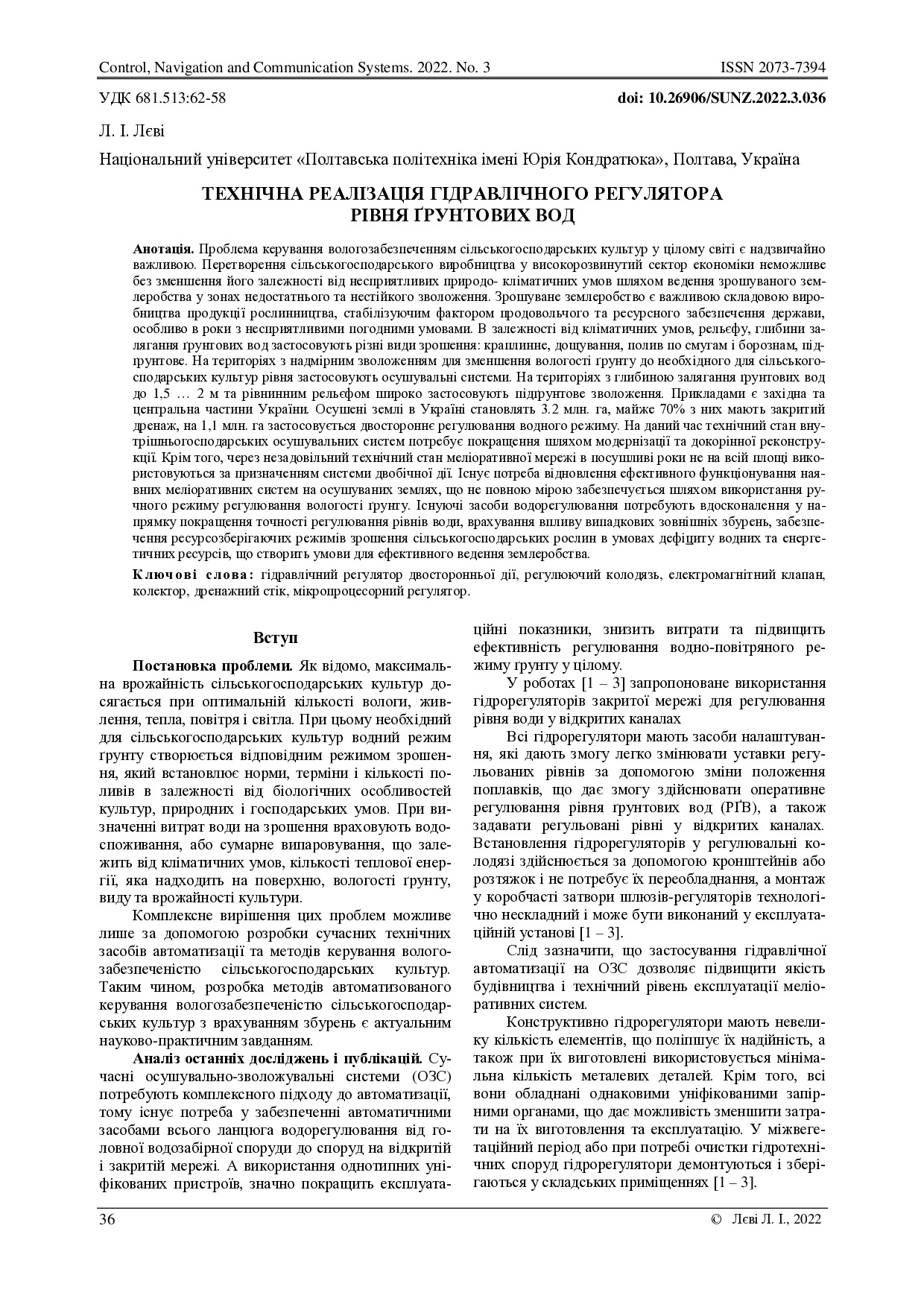 Технічна реалізація гідравлічного регулятора рівня ґрунтових вод