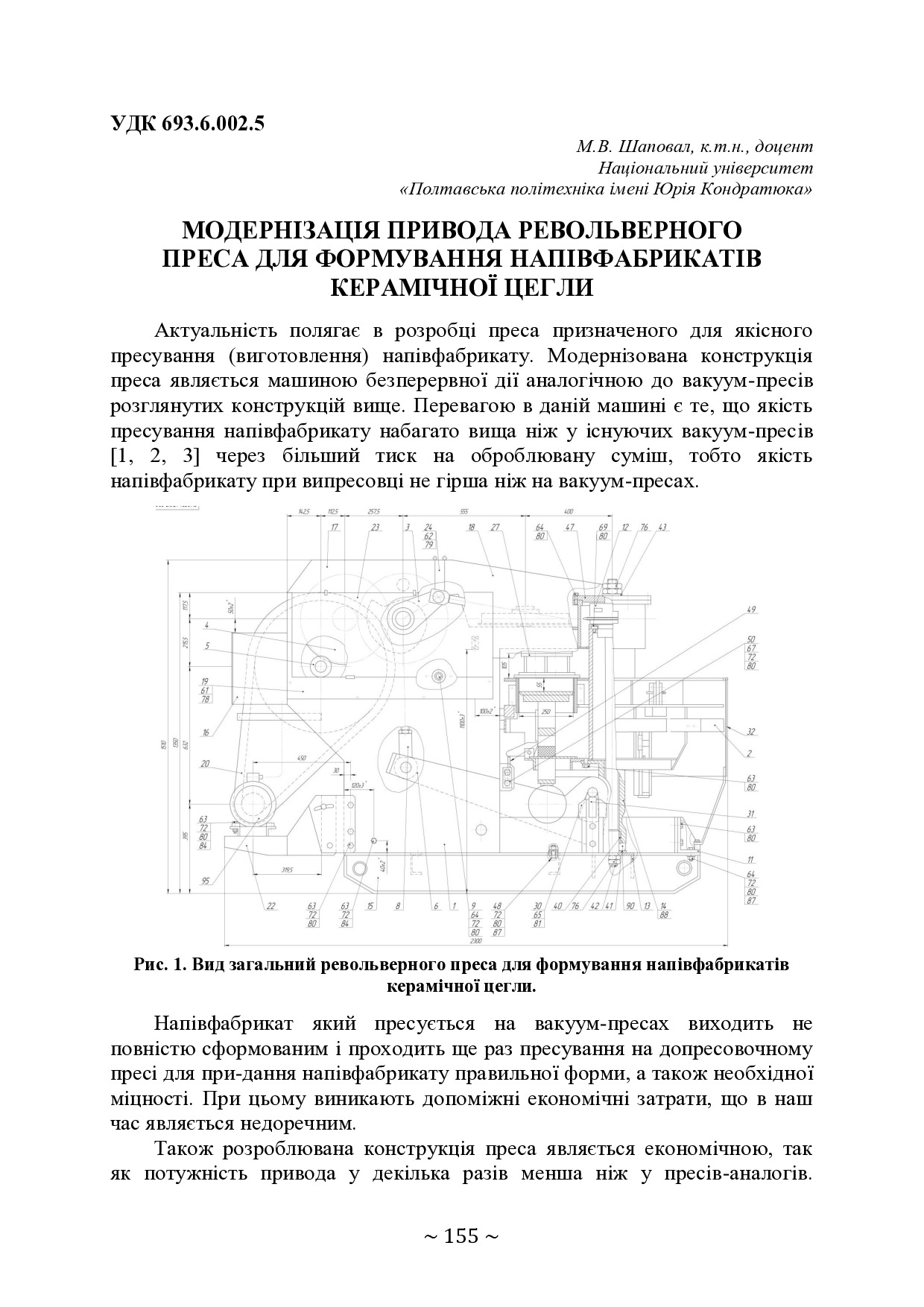 Модернізація привода револьверного преса для формування напівфабрикатів керамічної цегли
