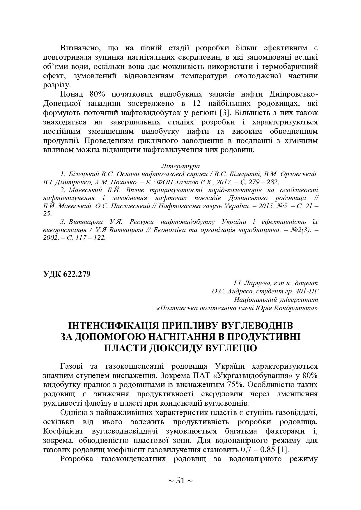 Інтенсифікація припливу вуглеводнів за допомогою нагнітання в продуктивні пласти діоксиду вуглецю