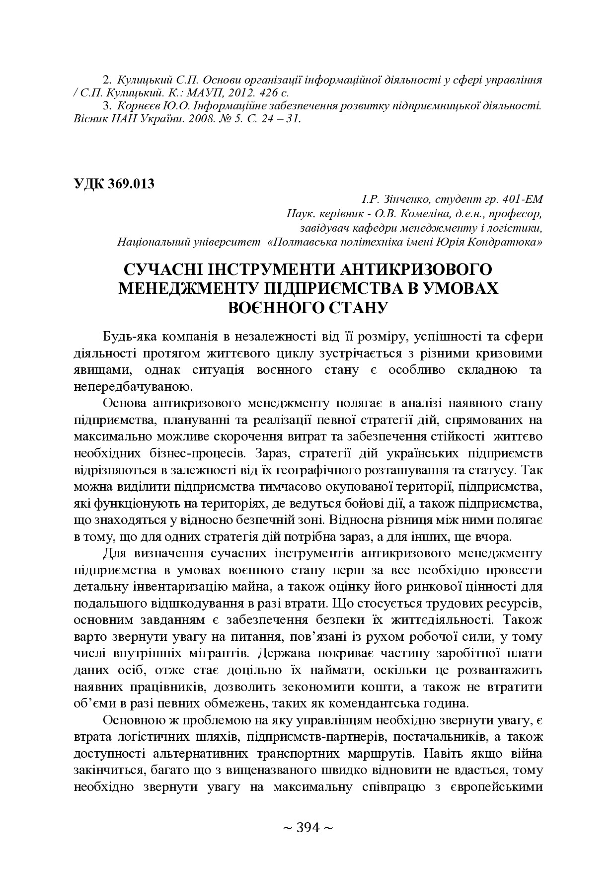 Сучасні інструменти антикризового менеджменту підприємства в умовах воєнного стану