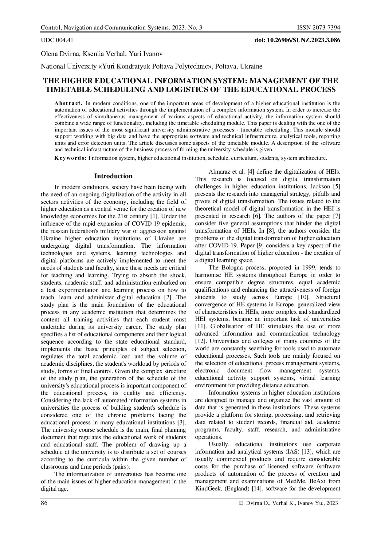 The higher educational information system: management of the timetable scheduling and logistics of the educational process