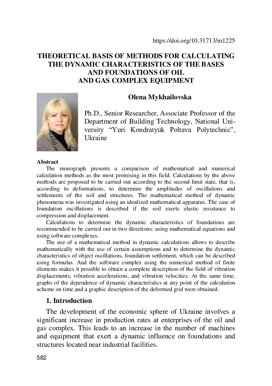 Theoretical basis of methods for calculating the dynamic characteristics of the bases and foundations of oil and gas complex equipment