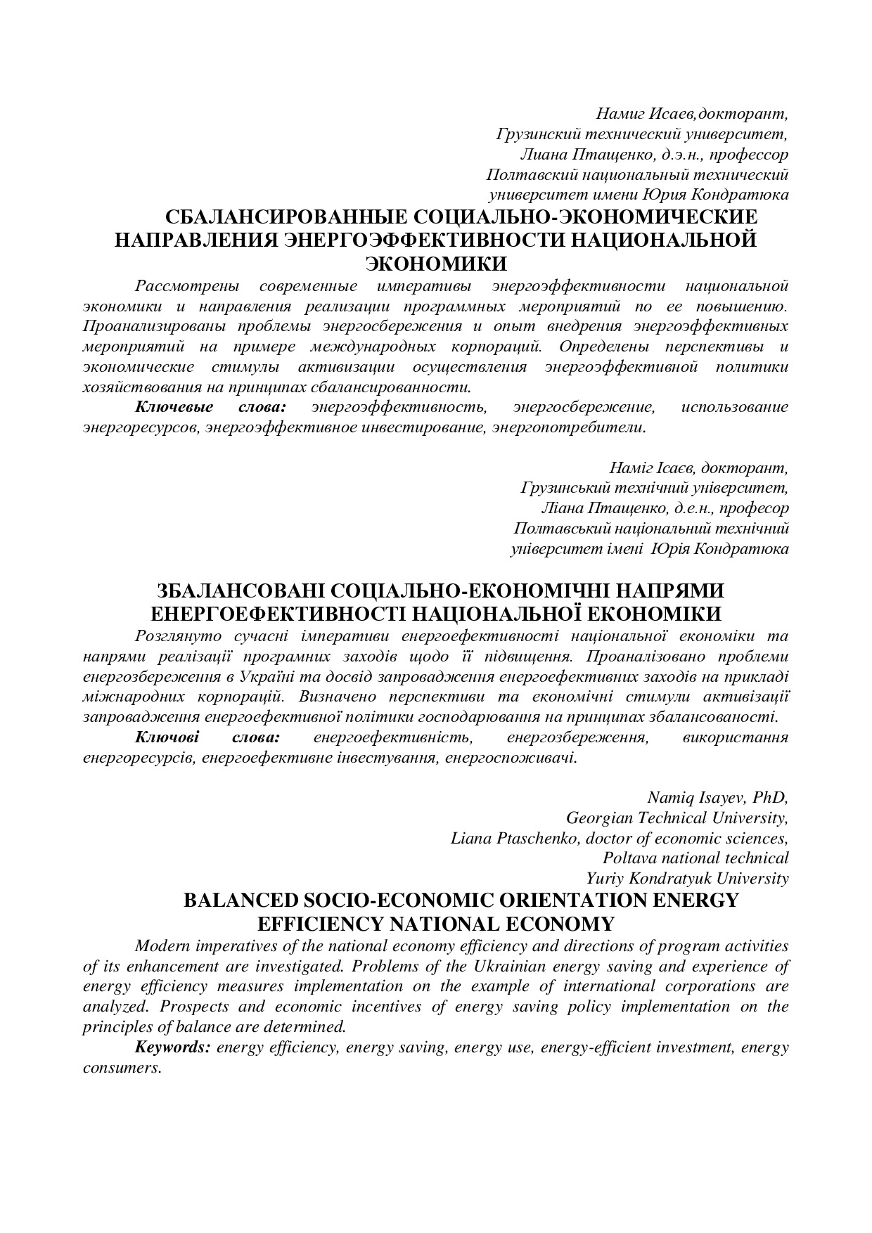 Сбалансированные социально-экономические направления энергоэффективности национальной экономики
