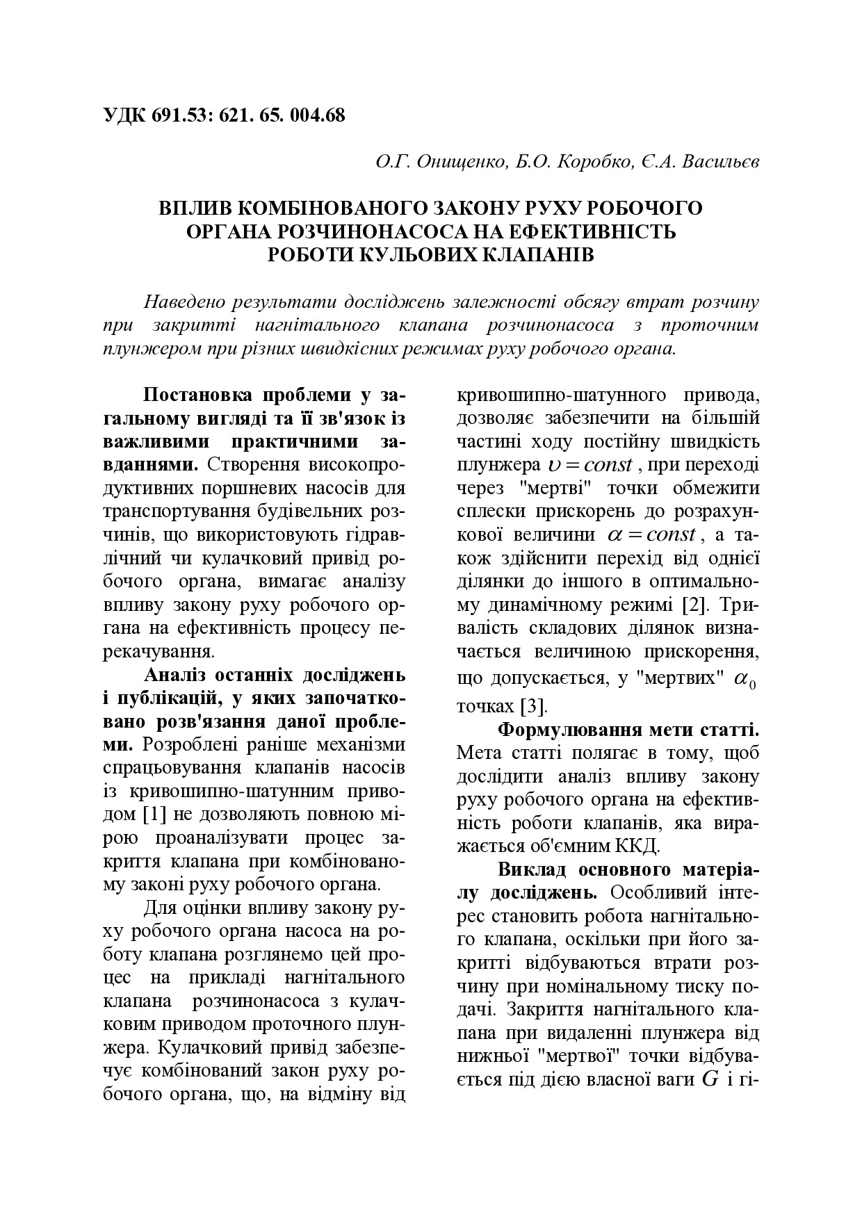 Вплив комбінованого закону руху робочого органа розчинонасоса на ефективність роботи кульових клапанів