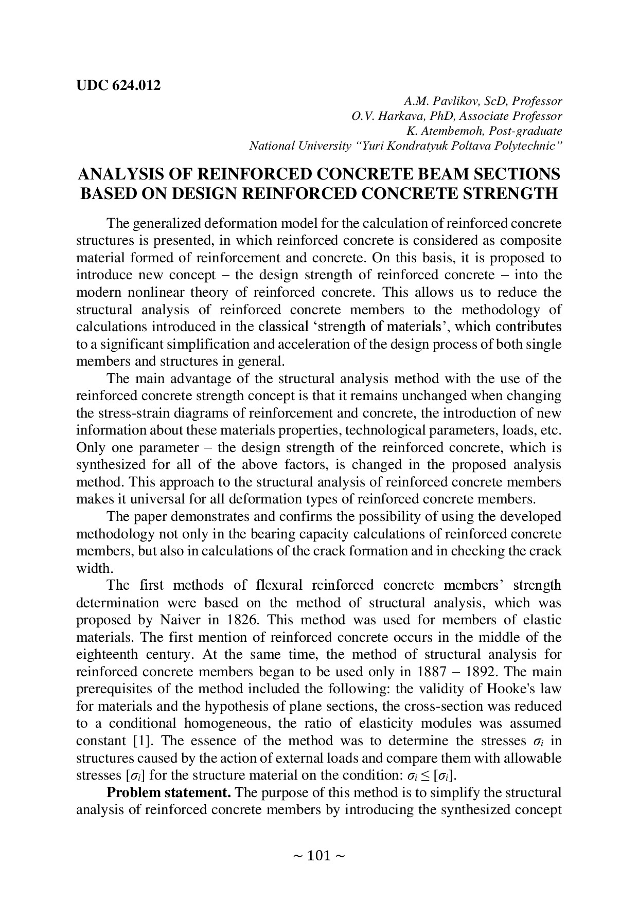 Analysis of reinforced concrete beam sections based on design reinforced concrete strength