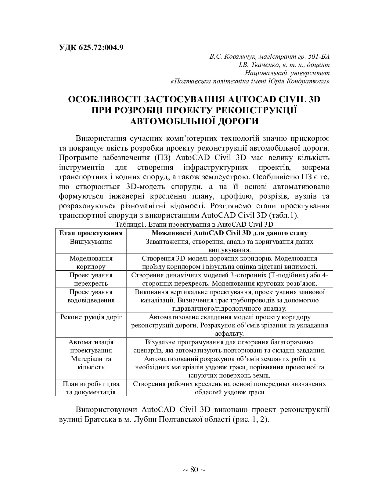 Особливості застосування AutoCAD Civil 3D при розробці проекту реконструкції автомобільної дороги