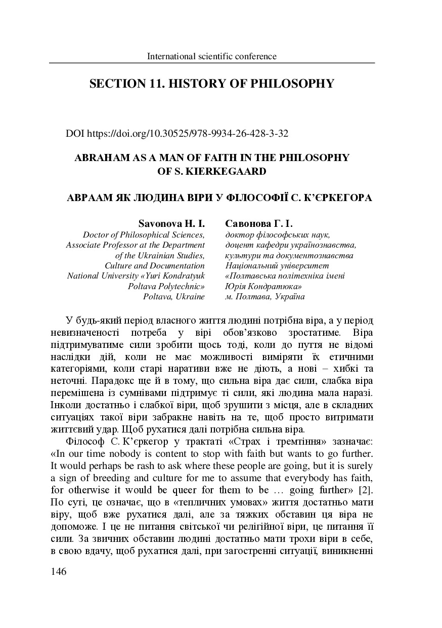 Авраам як людина віри у філософії С. К’єркегора
