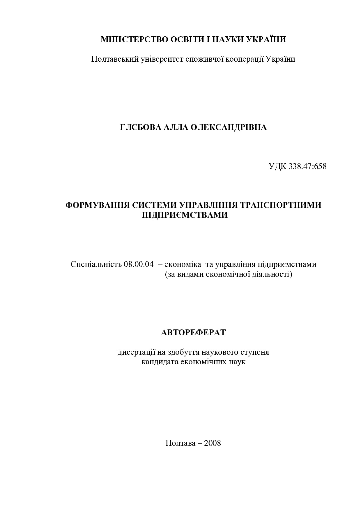 Формування системи управління транспортними підприємствами