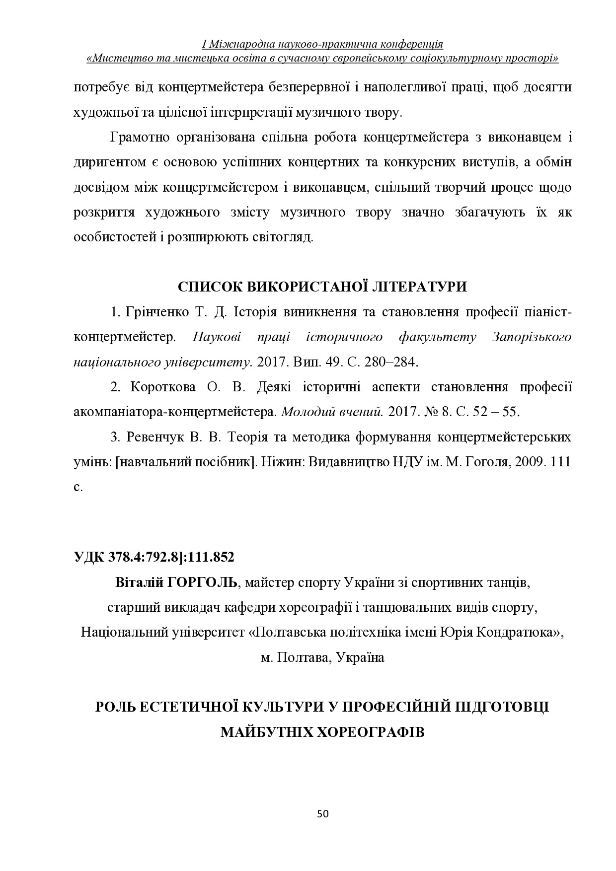 Роль естетичної культури у професійній підготовці майбутніх хореографів