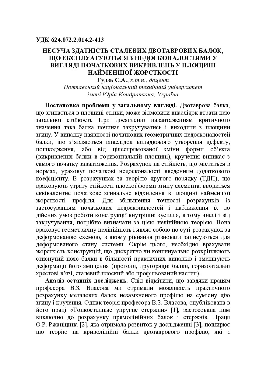 Несуча здатність сталевих двотаврових балок, що експлуатуються з недосконалостями у вигляді початкових викривлень у площині найменшої жорсткості