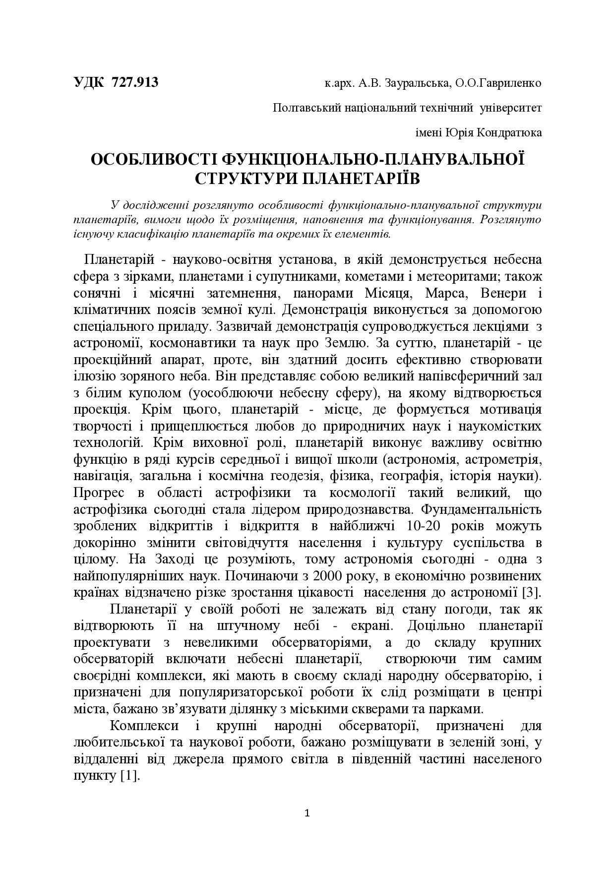 Особливості функціонально-планувальної структури планетаріїв
