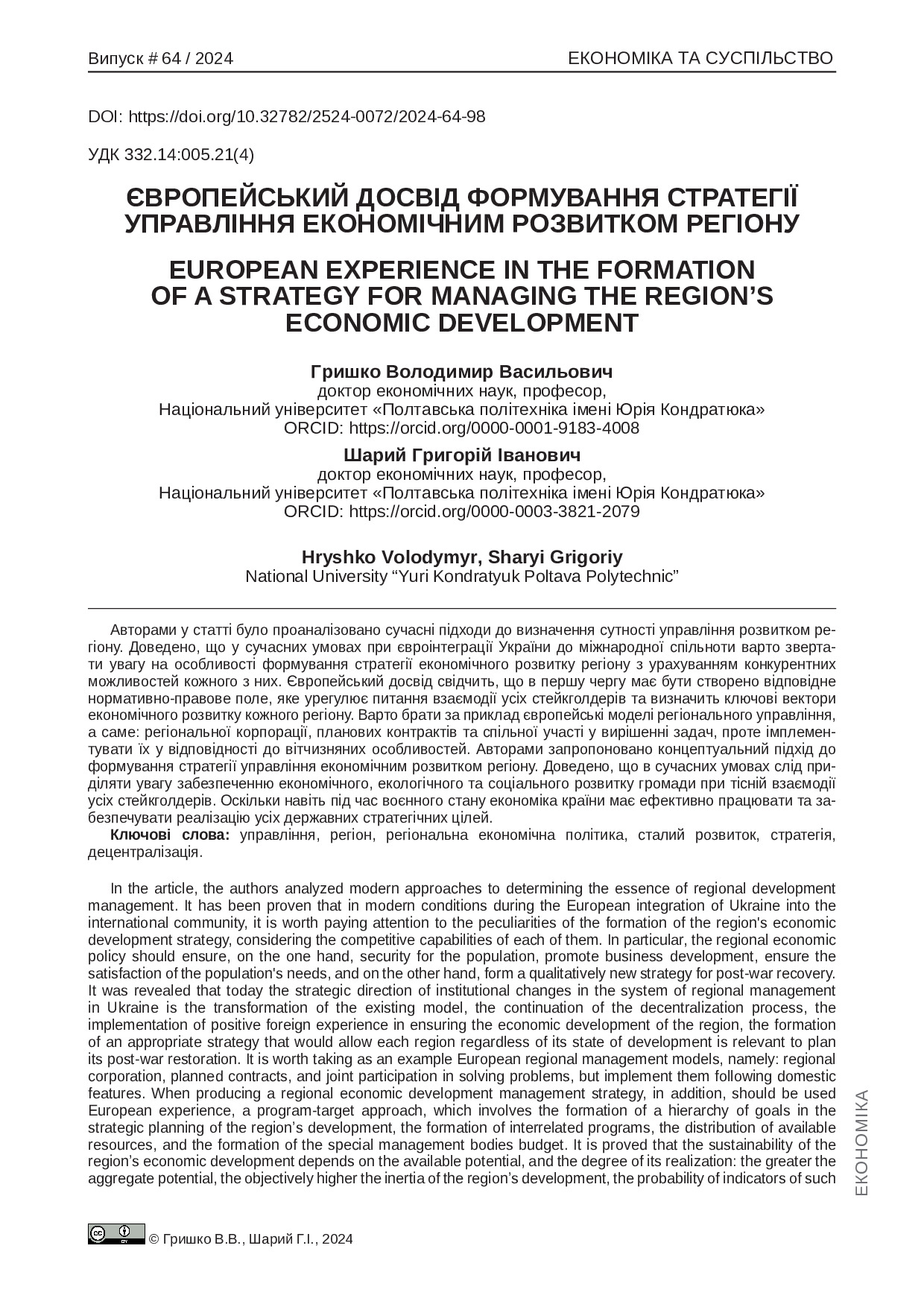 Європейський досвід формування стратегії управління економічним розвитком регіону